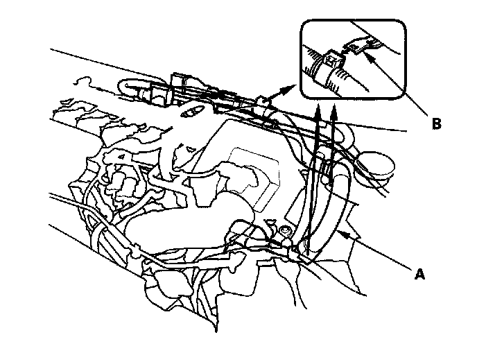 5. Disconnect the A/C compressor power connector (A) from the A/C compressor driver.