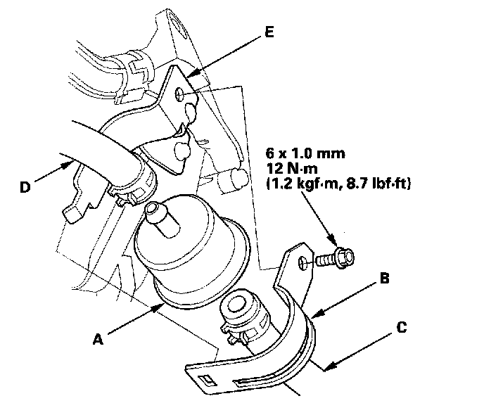 5. Secure the ATF filter on its bracket (E) with the ATF filter holder and the bolt.