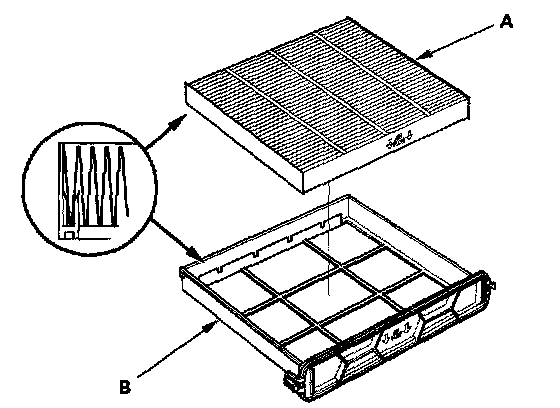 3. Remove the filter (A) from the housing (B), and replace the filter.