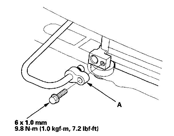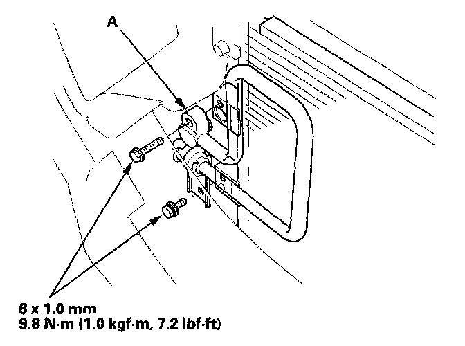 4. Remove the bolt, then disconnect the receiver line (A) from the A/C condenser.