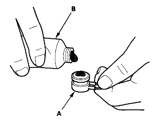 2. Replace the thermal protector (A) with a new one, and apply silicone sealant (B) to the bottom of the thermal protector.