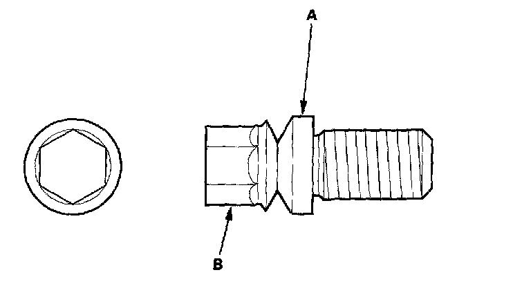 7. Tighten the shear bolts (A) until the hex heads (B) twist off.