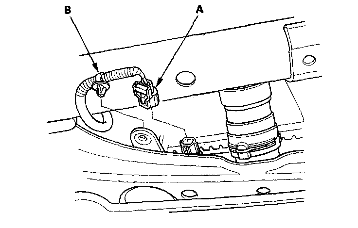 10. Disconnect the engine coolant temperature (ECT) sensor 2 connector (A), and remove the harness clamp (B).