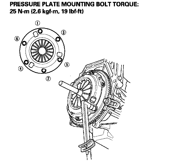 Pressure Plate, tighten the mounting bolts in a crisscross pattern in several steps then torque the bolts to the specified torque