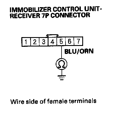 11. Check for continuity between the immobilizer control unit-receiver 7P connector No. 5 (IMOARM) terminal and body ground.