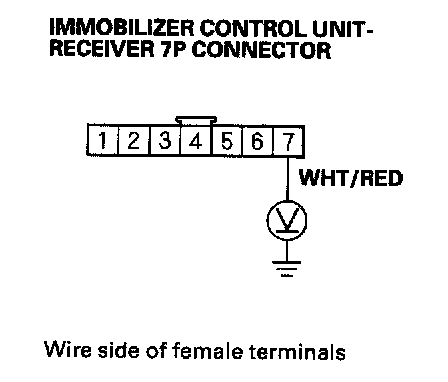 23. Check for voltage between the immobilizer control unit-receiver 7P connector No. 6 (IG1) terminal and body ground.
