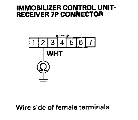 34. Check for continuity between the immobilizer control unit-receiver 7P connector No. 2 (IMOCD) terminal and body ground.