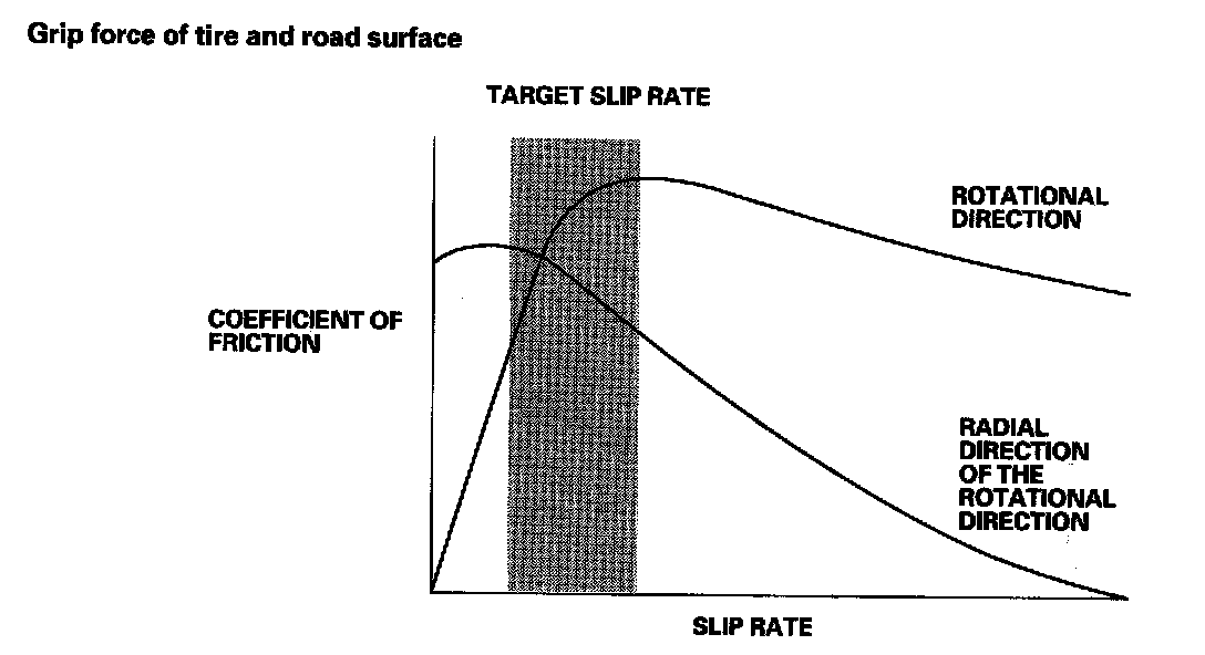 When the brake pedal is pressed during driving, the wheels can lock before the vehicle comes to a stop. In such an event, the maneuverability of the vehicle is reduced if the front wheels are locked, and the stability of the vehicle is reduced if the rear wheels are locked, creating an extremely unstable condition. The ABS precisely controls the slip rate of the wheels to ensure maximum grip force from the tires, thereby ensuring the maneuverability and stability of the vehicle.