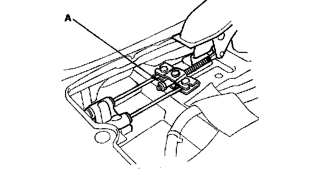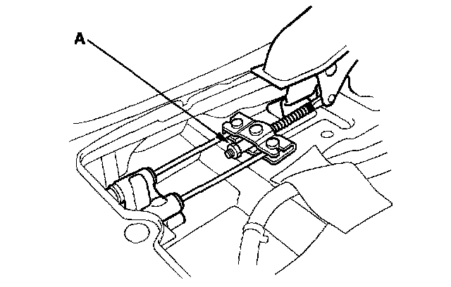 5. Tighten the adjusting nut (A) until the parking brakes drag slightly when the rear wheels are turned.