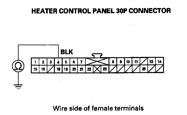 6. Check for continuity between the No. 4 terminal of the heater control panel 30P connector and body ground.