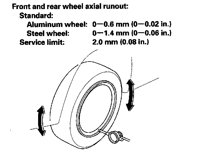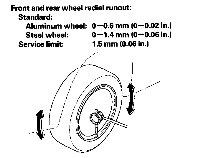 6. If the bearing end play is within the specification but the wheel runout is more than the service limit, replace the wheel.