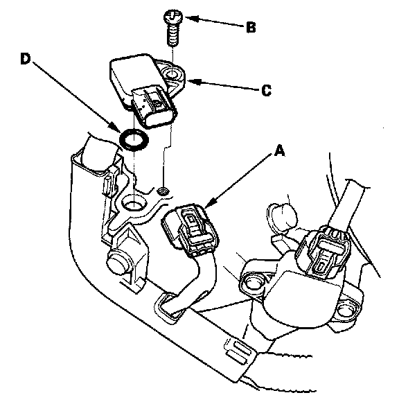 4. Install the sensor in the reverse order of removal with a new O-ring (D).
