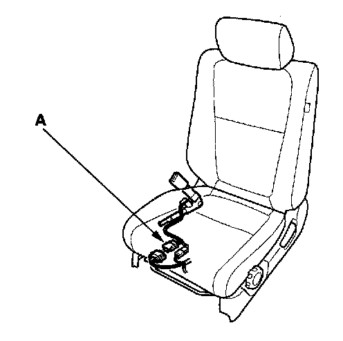 4. Disconnect the side airbag 2P connector (A) from the floor wire harness