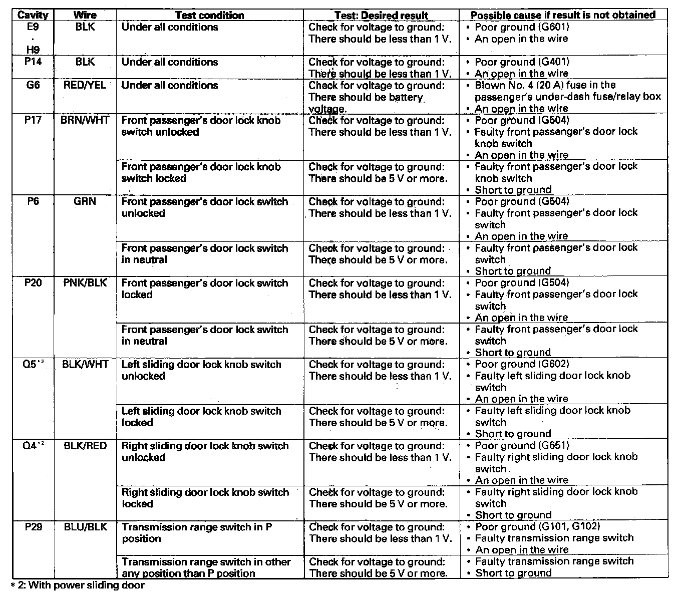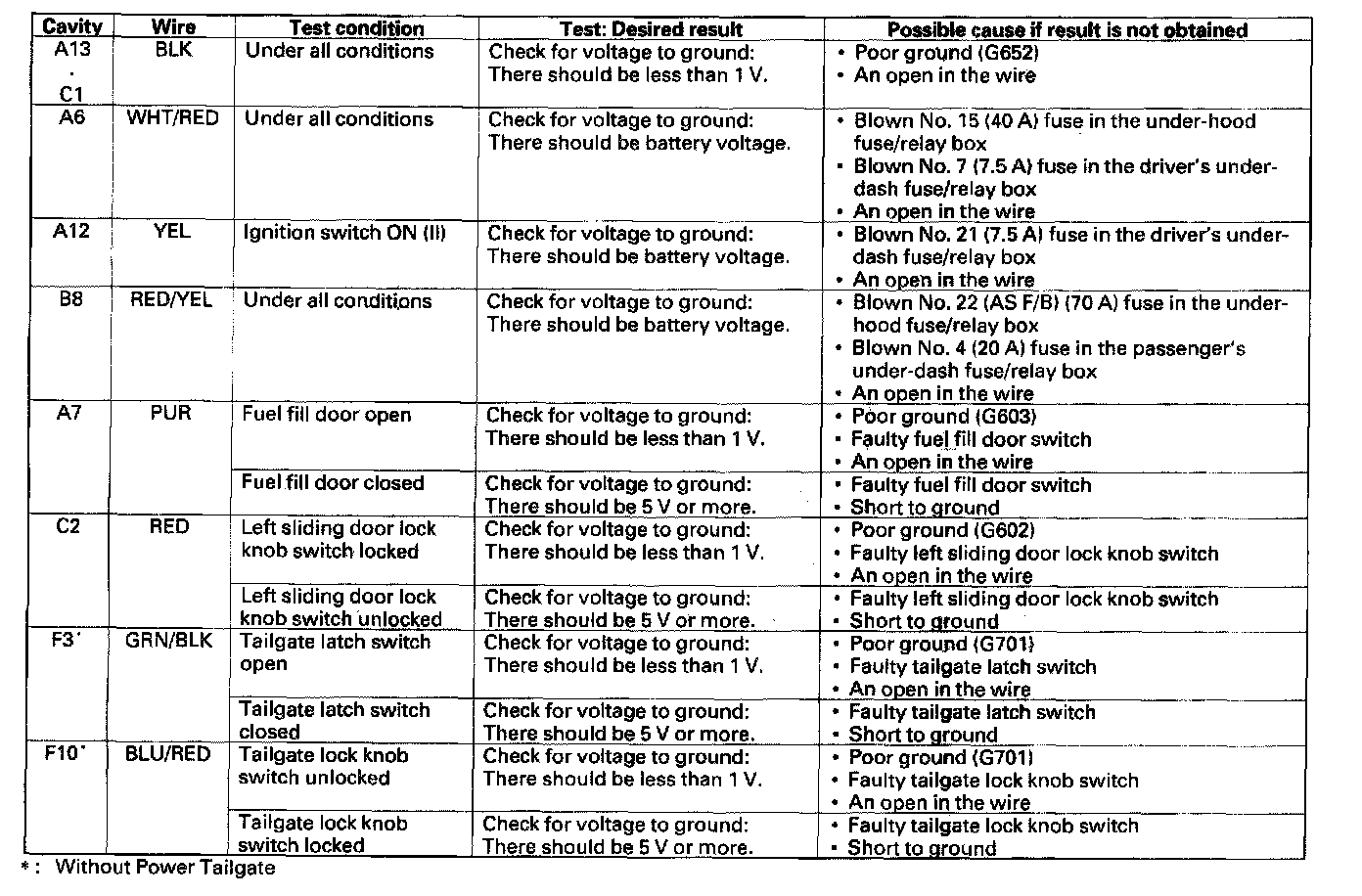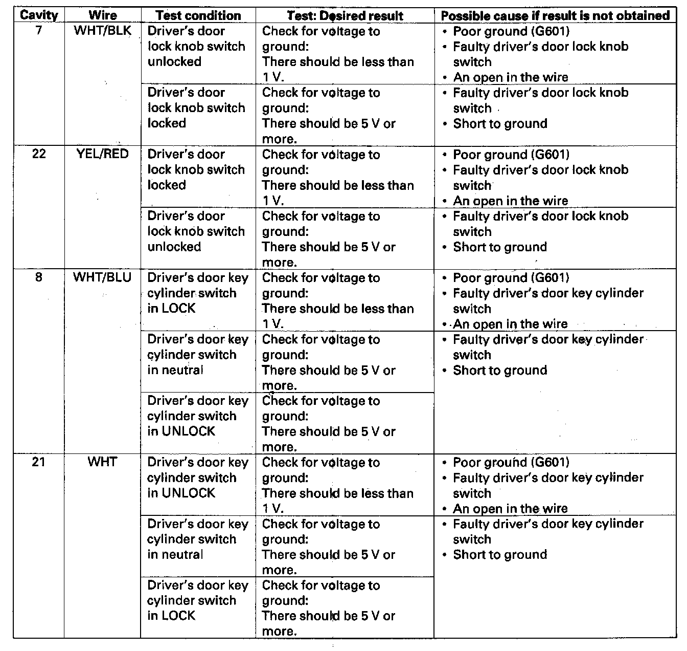 Control Unit Input TestNOTE: Before troubleshooting the keyless entry/security control system, troubleshoot the multiplex integrated control system first using B-CAN System Diagnosis Test Mode A. Troubleshooting - B-CAN System Diagnosis Test Mode A