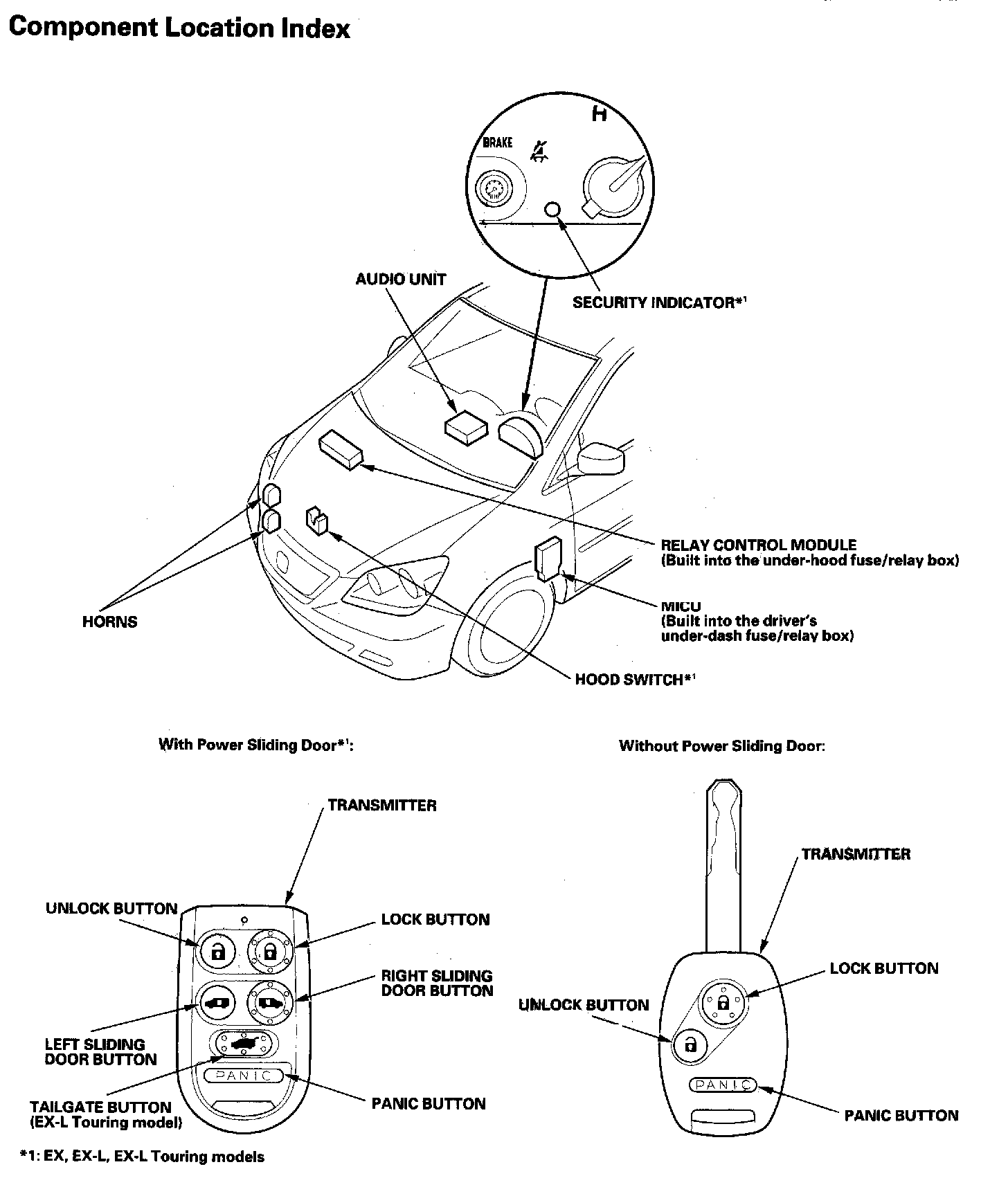 Keyless/Power Door Locks/Security System - Component Location Index: