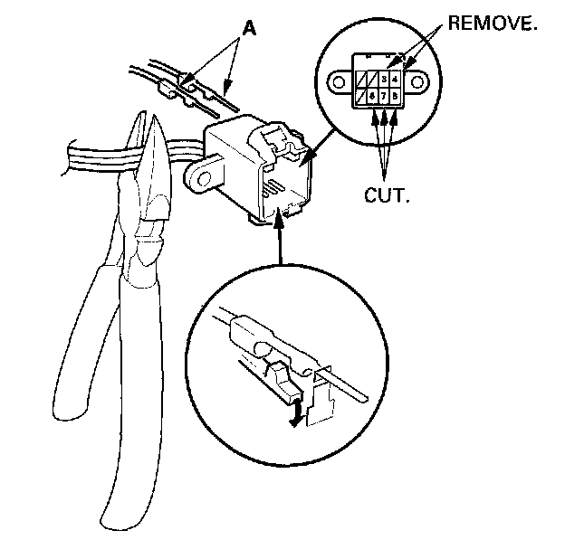 6. Cut the wire harness with wire cutters.