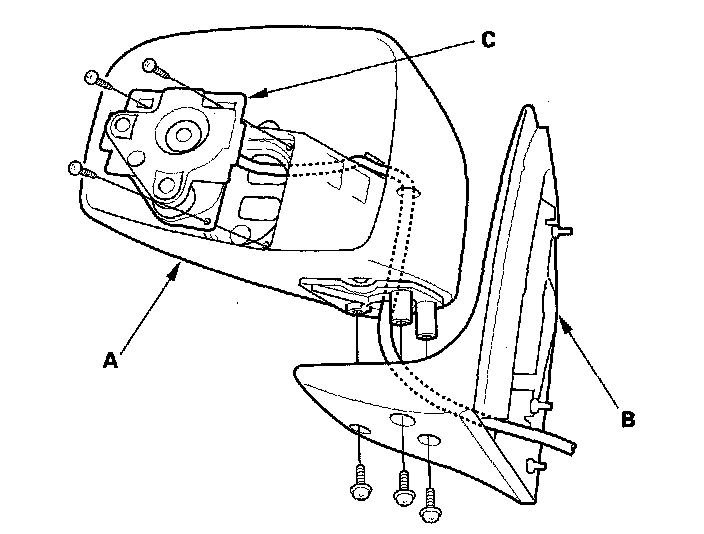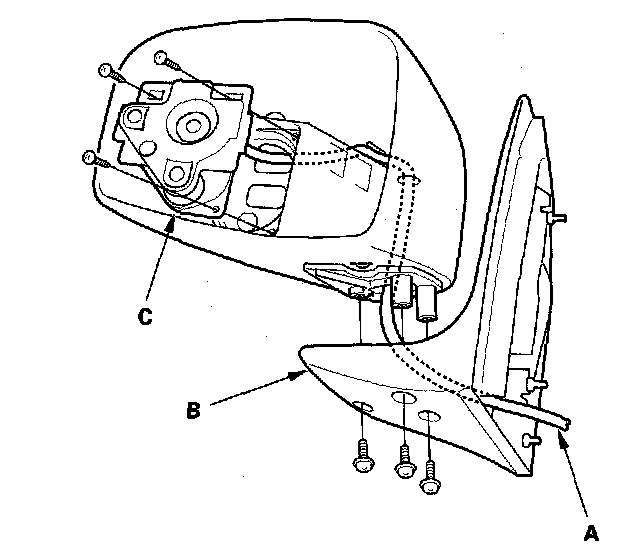 9. Remove the three screws and the power mirror actuator (C).