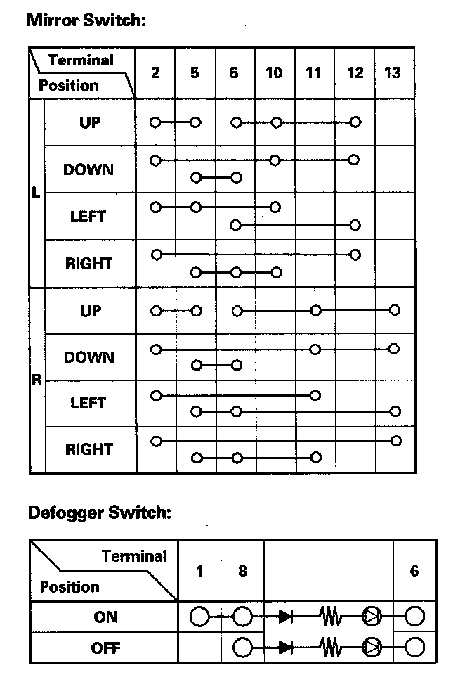 4. If the continuity is not as specified, remove the screws and replace the power mirror switch.