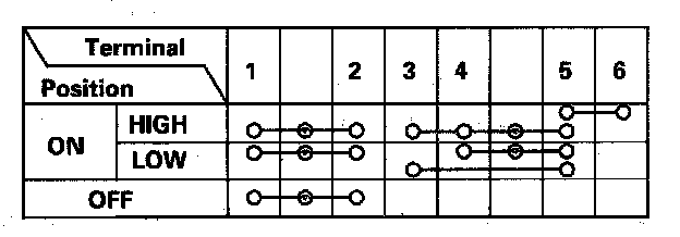 4. Check for continuity between the terminals in each switch position according to the table.