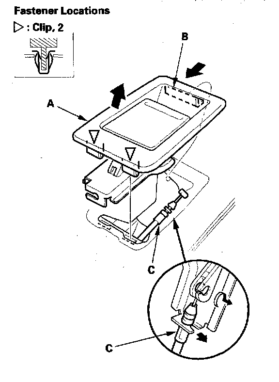 5. Release the seat cushion cover clips (A, B) around the recline outer cover (C).