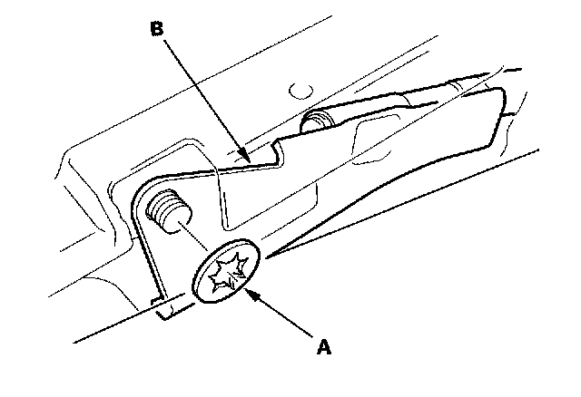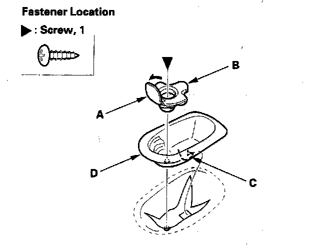 4. Pry up the cap (A), and remove the screw, then remove the cushion hook (B). Release the hook (C), then remove the cushion hook trim (D).