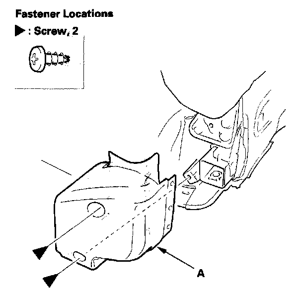 6. Remove the screws, then remove the outer recline cover (A). The left outer recline cover is shown; the right outer recline cover is similar.
