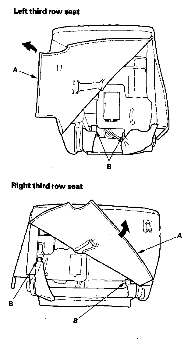 9. Pull up the seat back cover (A), and release the hook strips (B).