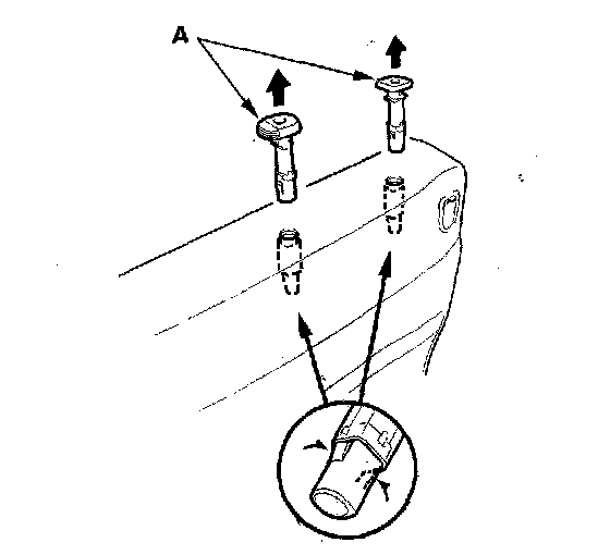 10. Pinch the tabs on the ends of the headrest guides (A), and remove the guides from the seat-back.