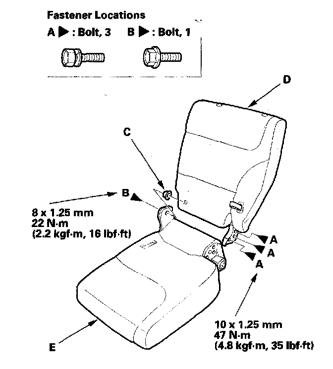24. Reassemble the seats in the reverse order of removal, and note these items.