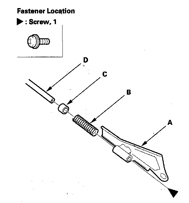 20. Remove the screw, then remove the plate (A), spring (B), and collar (C) from the end of the seat cushion rod (D).