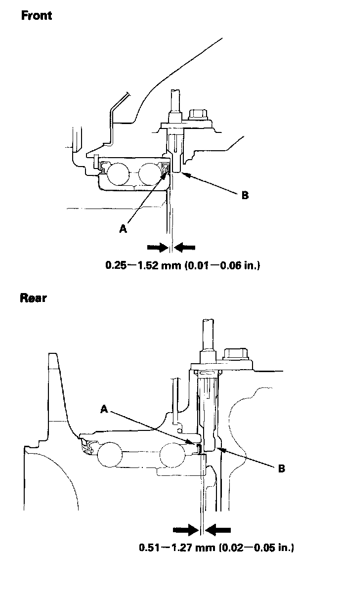 Rear: 0.51 - 1.27 mm (0.02 - 0.05 inch)