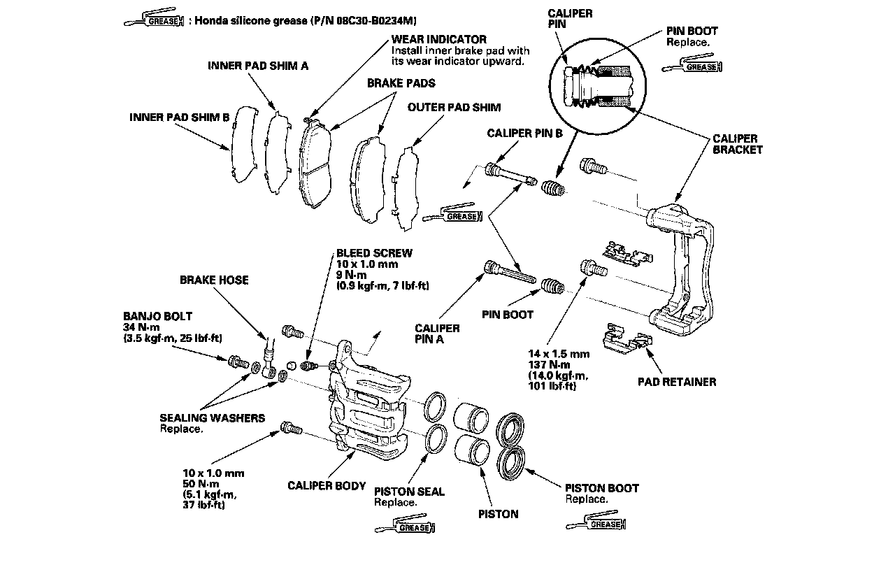 Front Brake Caliper OverhaulCAUTION: Frequent inhalation of brake pad dust, regardless of material composition, could be hazardous to your health.