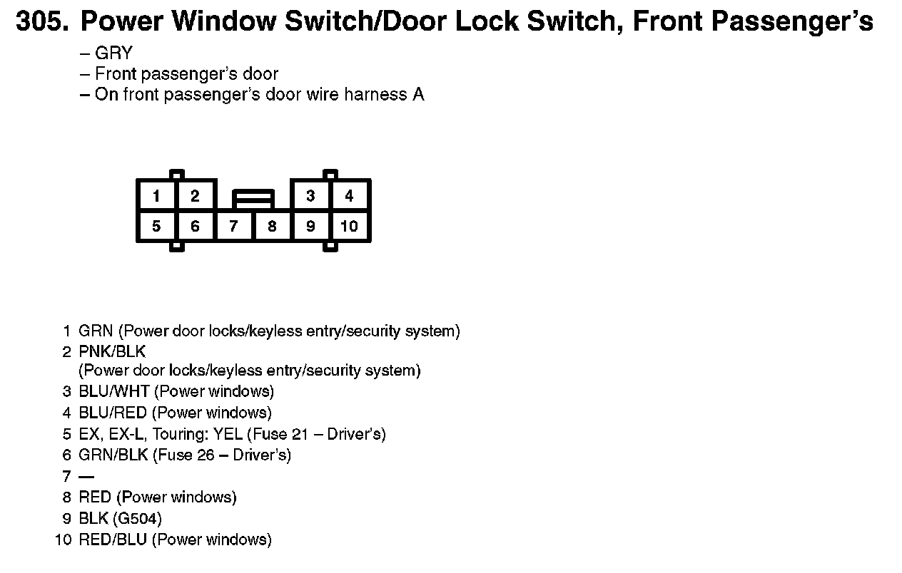 305. Power Window Switch/Door Lock Switch, Front Passenger's: