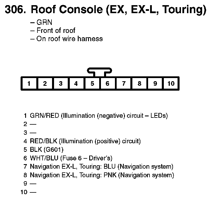 306. Roof Console (EX, EX-L, Touring):