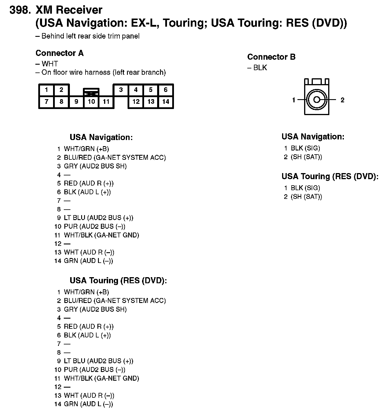 398. XM Receiver (USA Navigation: EX-L, Touring;USA Touring: RES (DVD)):