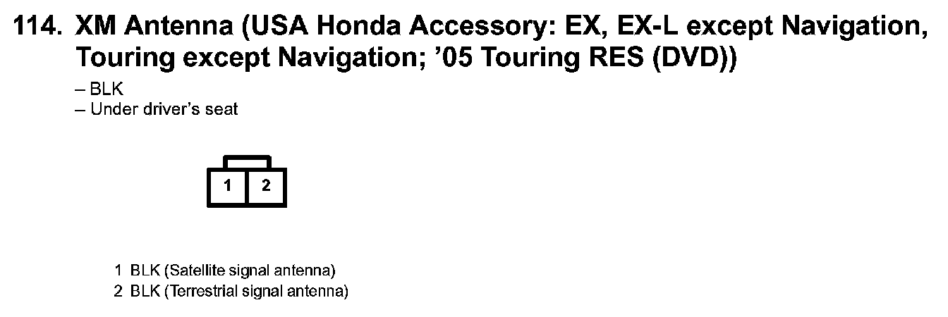 114. XM Antenna (USA Honda Accessory: EX, EX-L Except Navigation, Touring Except Navigation; '05 Touring RES (DVD)):