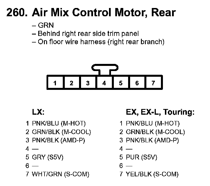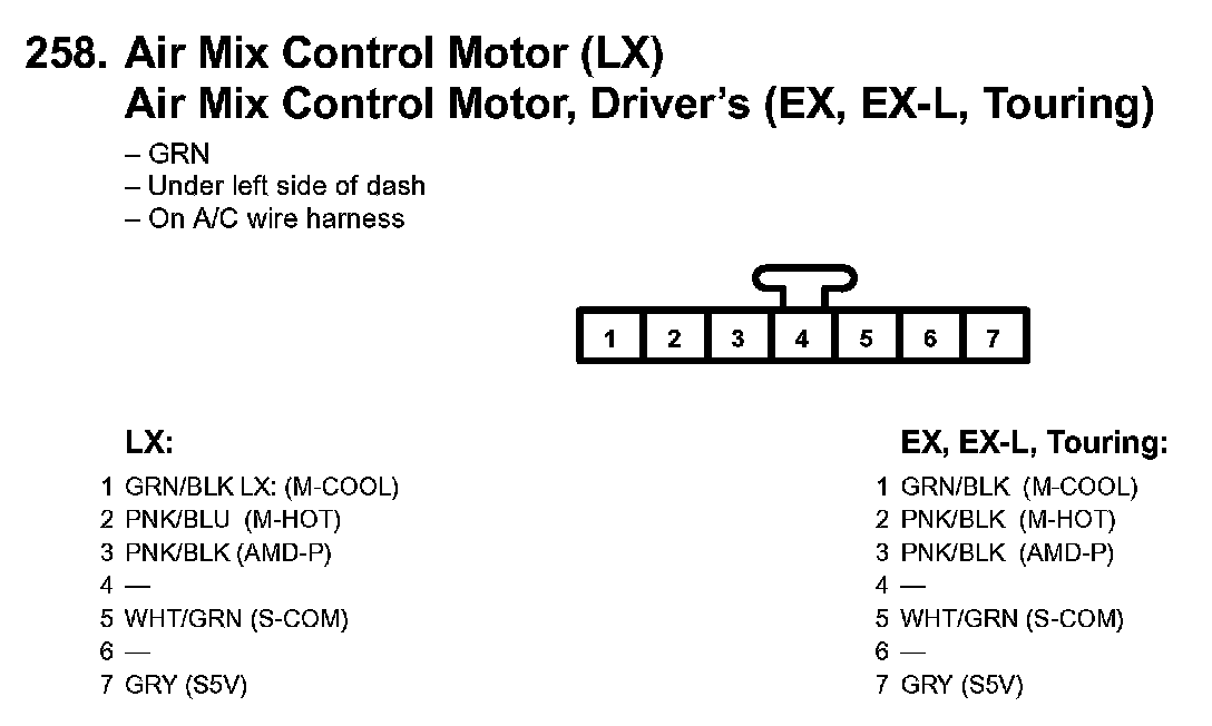 258. Air Mix Control Motor (LX) Air Mix Control Motor, Driver's (EX, EX-L, Touring):