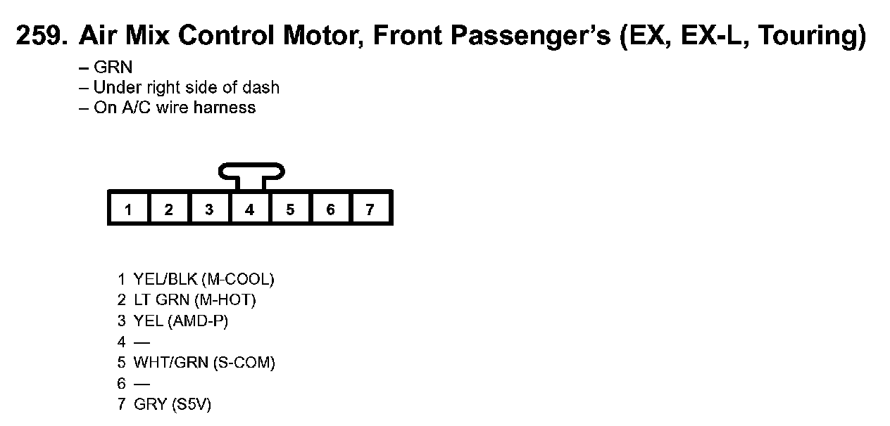 259. Air Mix Control Motor, Front Passenger's (EX, EX-L, Touring):