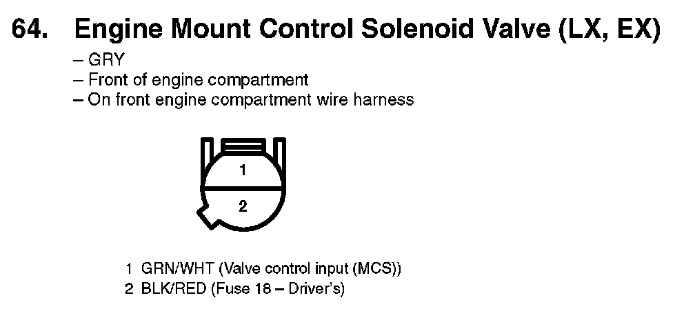 64. Engine Mount Control Solenoid Valve (LX, EX):