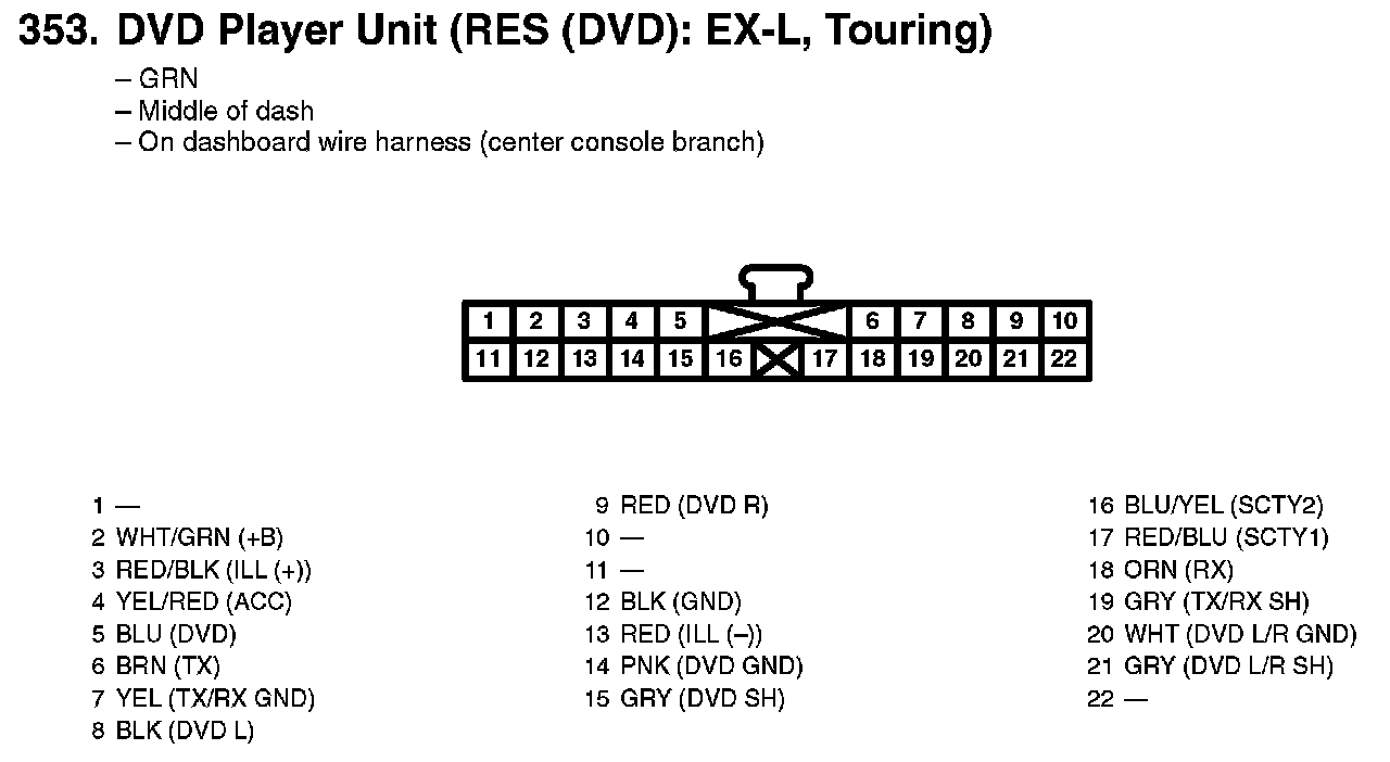 353. DVD Player Unit (RES (DVD): EX-L, Touring):