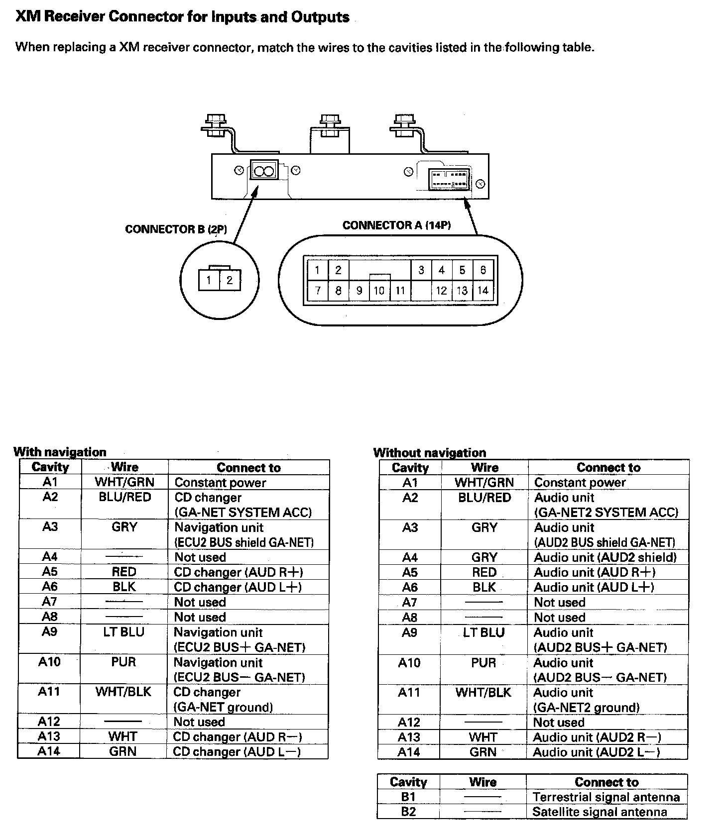XM Receiver Connector For Inputs And Outputs: