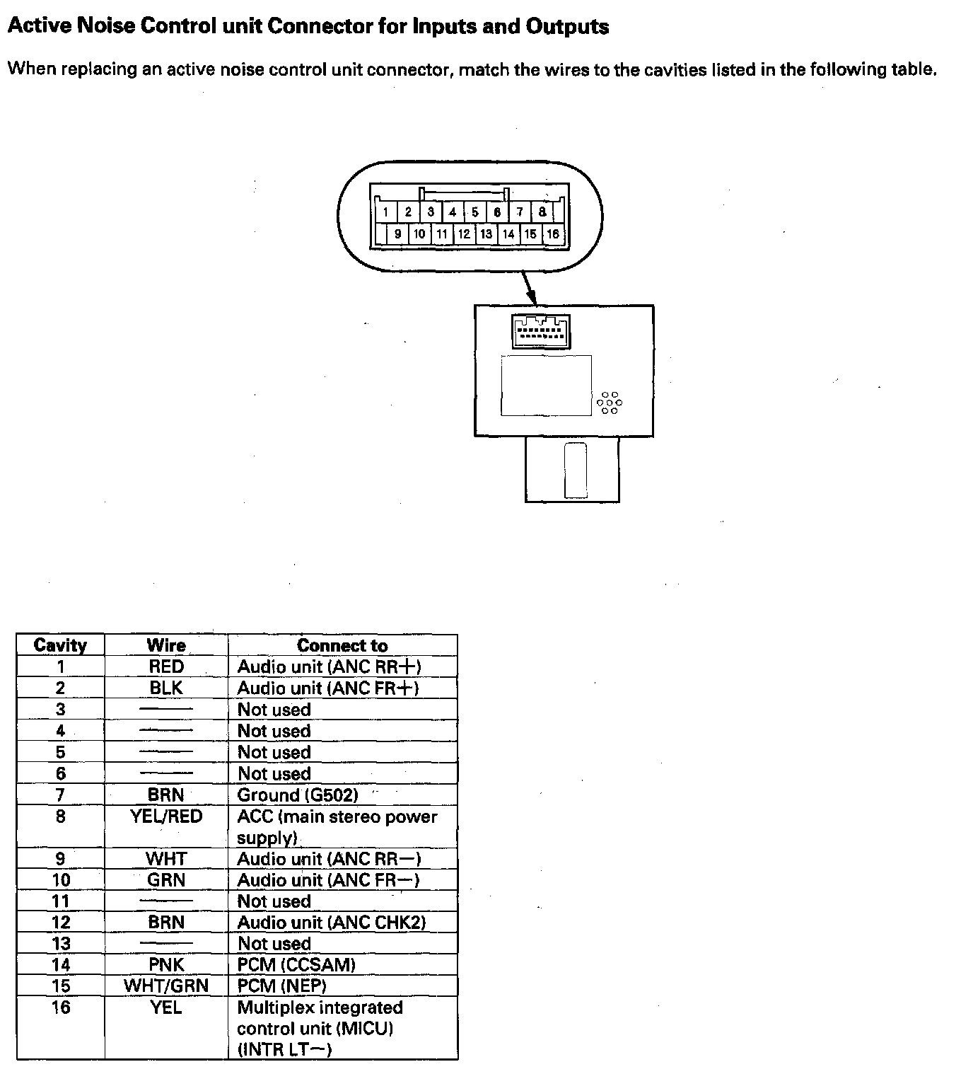 Active Noise Control Unit Connector For Inputs And Outputs: