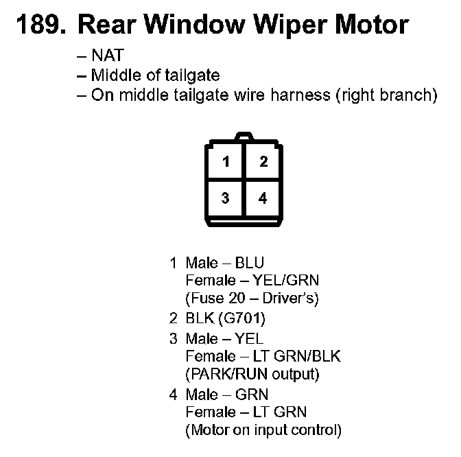189. Rear Window Wiper Motor: