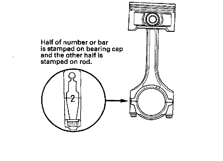 Numbers or bars have been stamped on the side of each connecting rod as a code for the size of the big end. Use them, and the letters or bars stamped on the crank (codes for rod journal size), to choose the correct bearings. If the codes are indecipherable because of an accumulation of dirt and dust, do not scrub them with a wire brush or scraper. Clean them only with solvent or detergent.