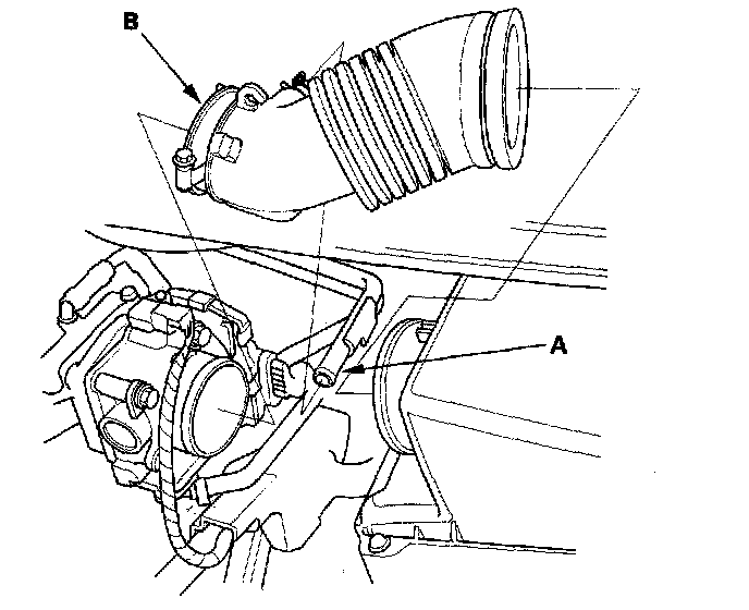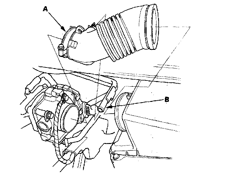 2. Remove the breather pipe (A), then remove the air intake duct (B).