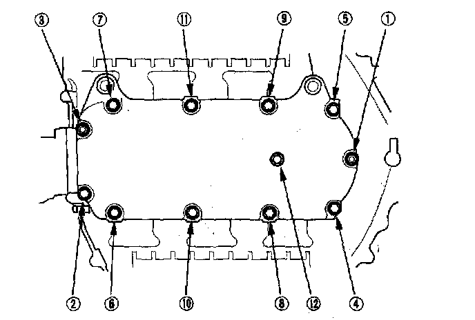 7. Remove the intake manifold mounting bolts and nuts sequentially in two or three steps.