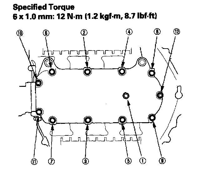 2. Install the upper cover. Tighten the bolts and nuts sequentially in two or three steps. Always use a new gasket.