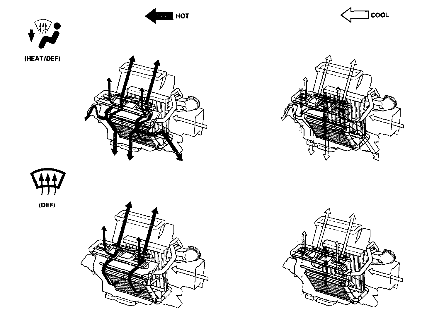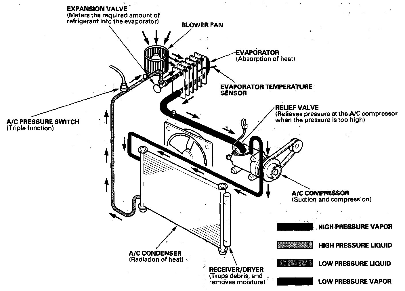 System DescriptionThe air conditioning system removes heat from the passenger compartment by circulating refrigerant through the system.
