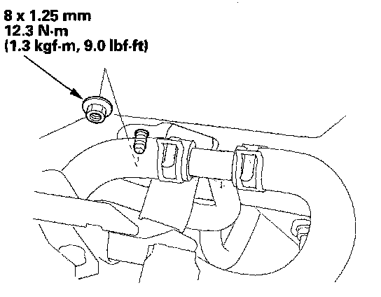 7. Remove the mounting nut from the heater unit. Take care not to damage or bend the fuel lines and the brake lines, etc.