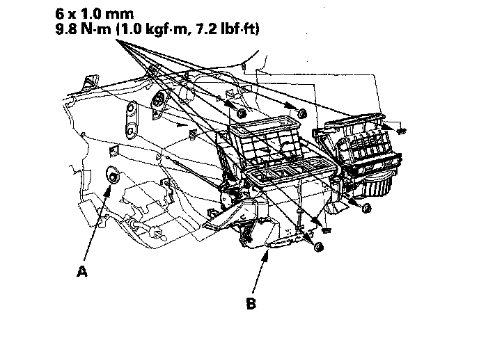 Heater Unit/Core ReplacementSRS components are located in this area. Review the SRS component locations , and the precautions and procedures before performing repairs or service.